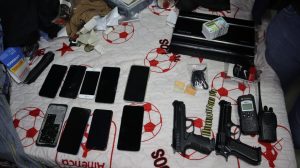 Se les incautaron 11 cartuchos calibre 9 mm, dos proveedores, 2 armas de fuego con características traumáticas, 10 celulares, dos radios de comunicación, partes de motocicletas y tres motocicletas que empleaban para la comisión de los hurtos.