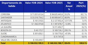 - Córdoba lidera con 63,7 % del valor exportado en 2025 con un crecimiento anual de 33,2 %.